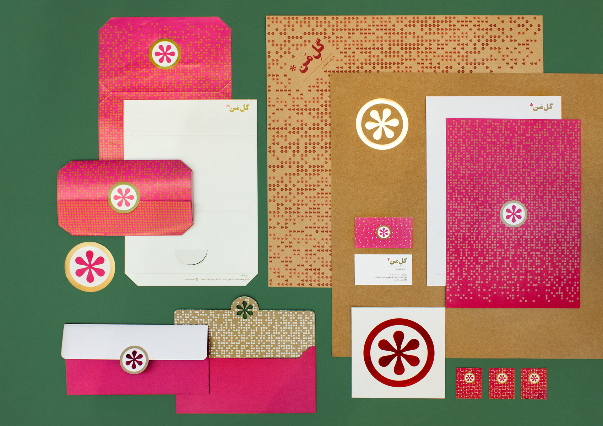 Visual identity design for "Gol-e-man" (my flower), a flower delivery service.